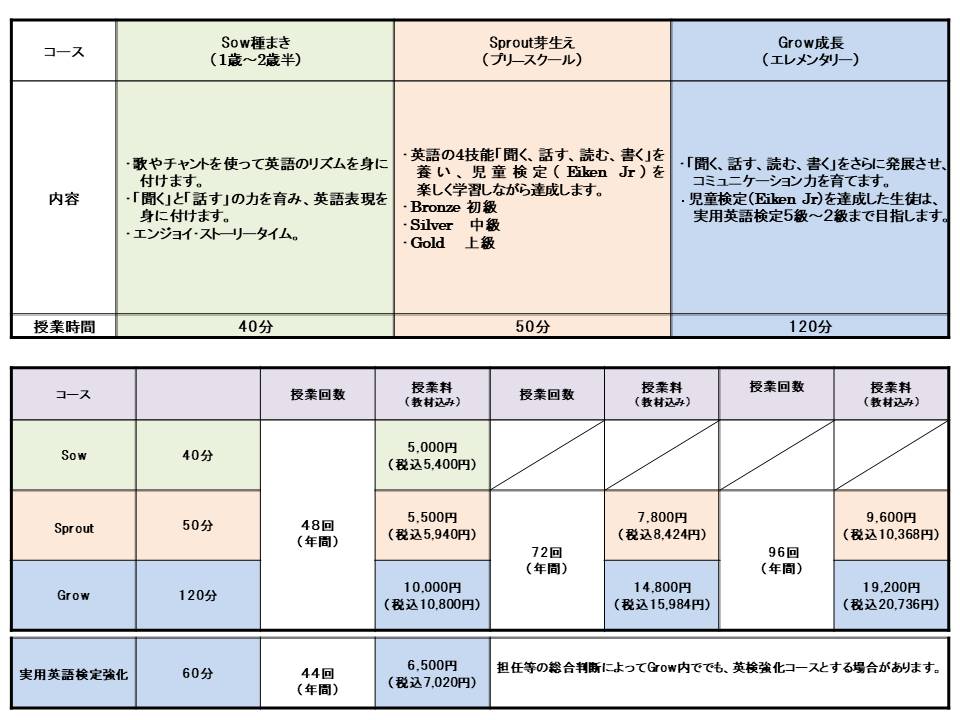 ・各コースの授業回数は月3回~5回のレッスンで、土曜日に行うことがあります。